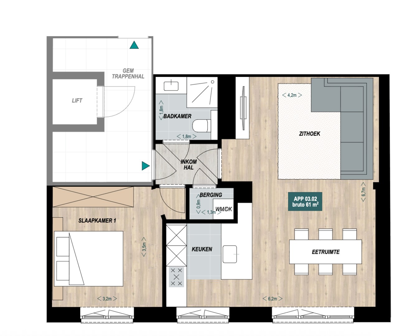 Dit prachtige bemeubelde appartement is gelegen in de bruisende stad Leuven, in de residentie SARAH. Het appartement is standaard afgewerkt en heeft een bewoonbare oppervlakte van 59.00 vierkante meter.