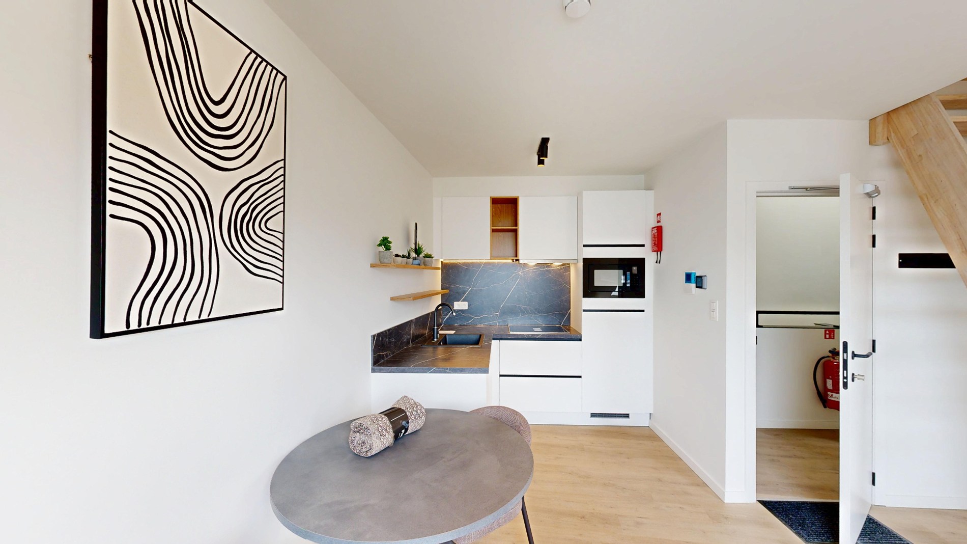 Het appartement is voorzien van een energielabel A, wat betekent dat het zeer energiezuinig is en dus lagere energierekeningen met zich meebrengt. De keuken is volledig uitgerust met alle benodigde toestellen en keukengerei, waardoor koken een waar genot is. De woonkamer is ruim en gezellig, ideaal om te ontspannen na een lange dag werken of studeren.
