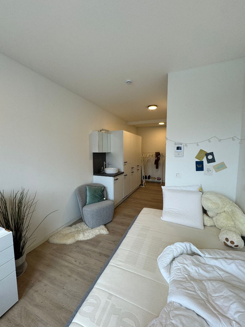 De kamer zelf is voorzien van alle benodigdheden, zoals een bed, bureau, kast, koelkast en een eigen badkamer. De keuken is gemeenschappelijk en deel je met je medebewoners.