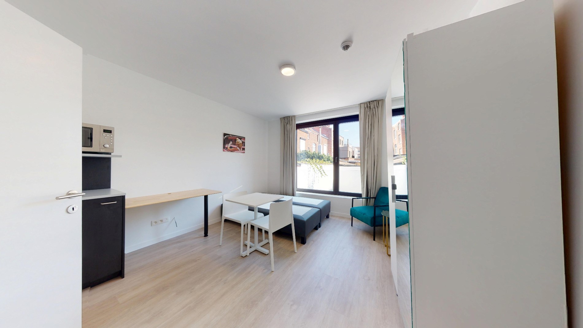 De bewoonbare oppervlakte van de kamers is 18.00 vierkante meter, wat genoeg ruimte biedt om te studeren en te ontspannen. Bovendien bevindt de residentie zich op een gunstige locatie, dicht bij het station en verschillende faculteiten van de KU Leuven.