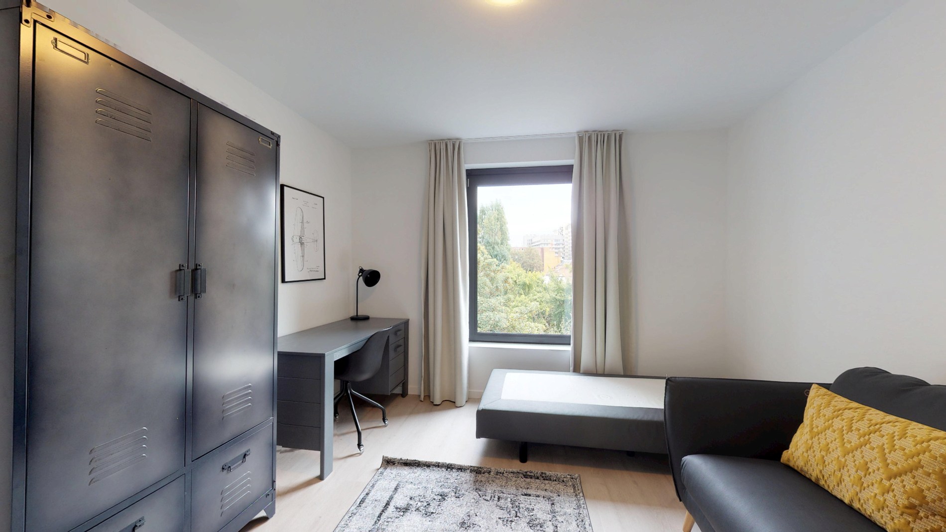 De kamer is volledig bemeubeld en voorzien van alle nodige faciliteiten, zoals een bed, bureau, kast en eigen badkamer. Daarnaast is er ook een gemeenschappelijke keuken en woonkamer waar je andere studenten kunt ontmoeten.
