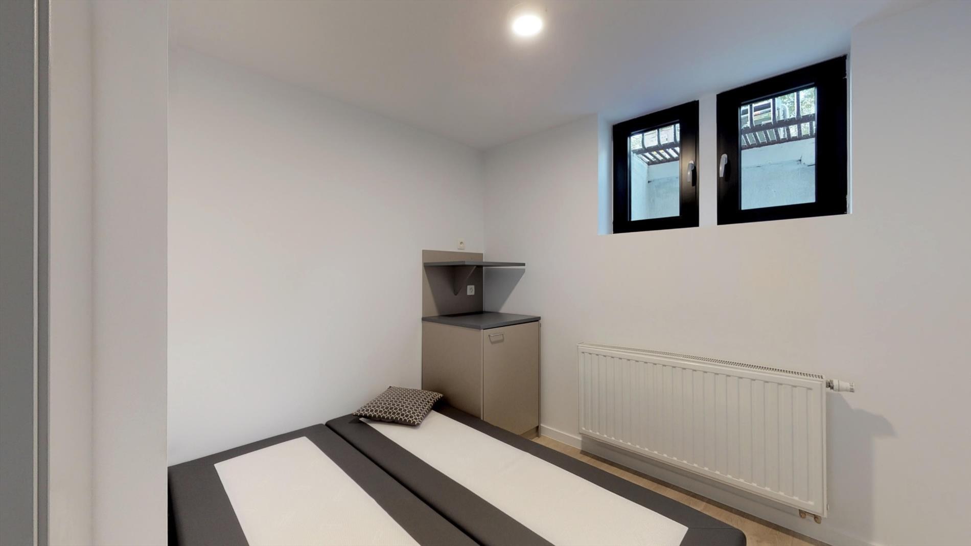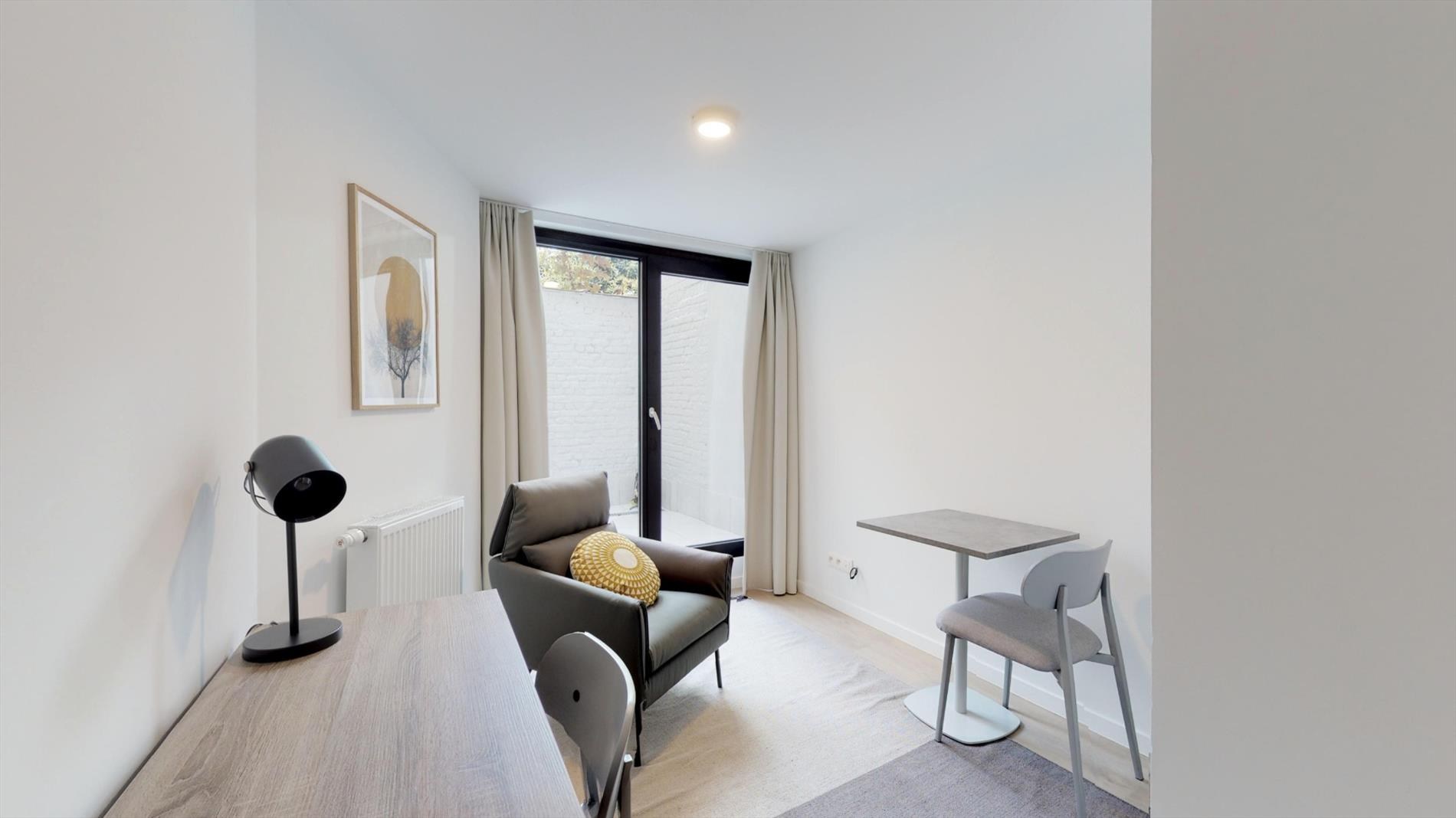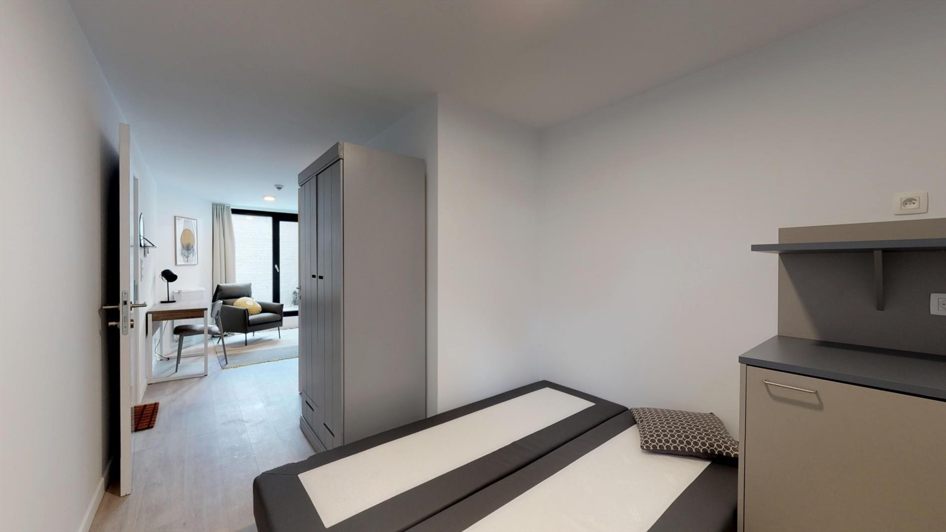 De studentenkamer is gelegen op de gelijkvloerse verdieping en is maar liefst 21 m² groot. De studentenkamer is voorzien van een eigen badkamer met douche, lavabo en toilet. Tot slot beschikt deze studentenkamer over een eigen terras van 5 m². Ook is er een ontbijtgelegenheid (koelkast + microgolfoven) aanwezig op de kamer zelf. Kortom een luxe studentenkamer op een toplocatie!