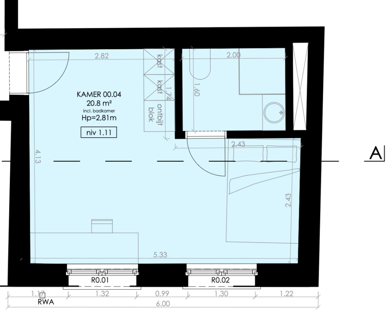 Bemeubelde studentenkamer in residentie VALENTINE, Leuven - MOMENTEEL IN RENOVATIE