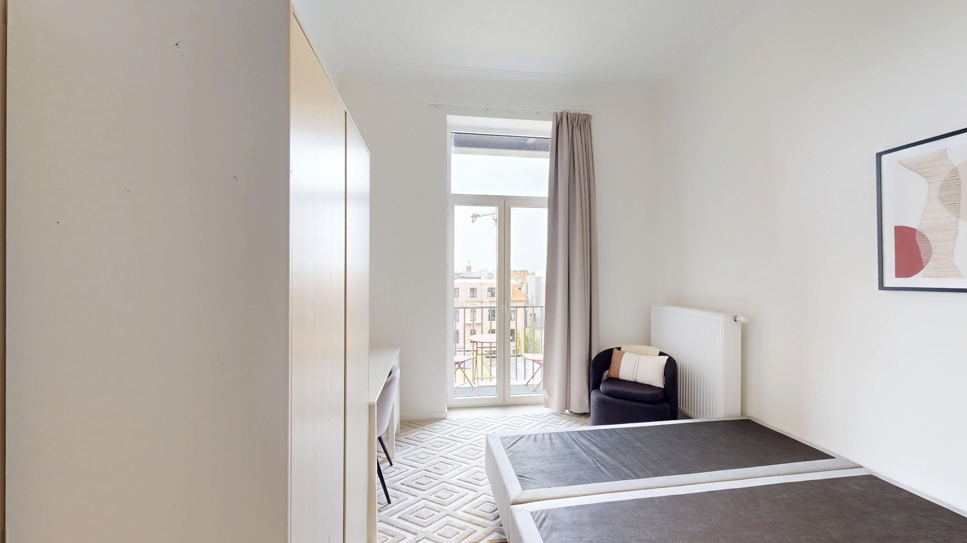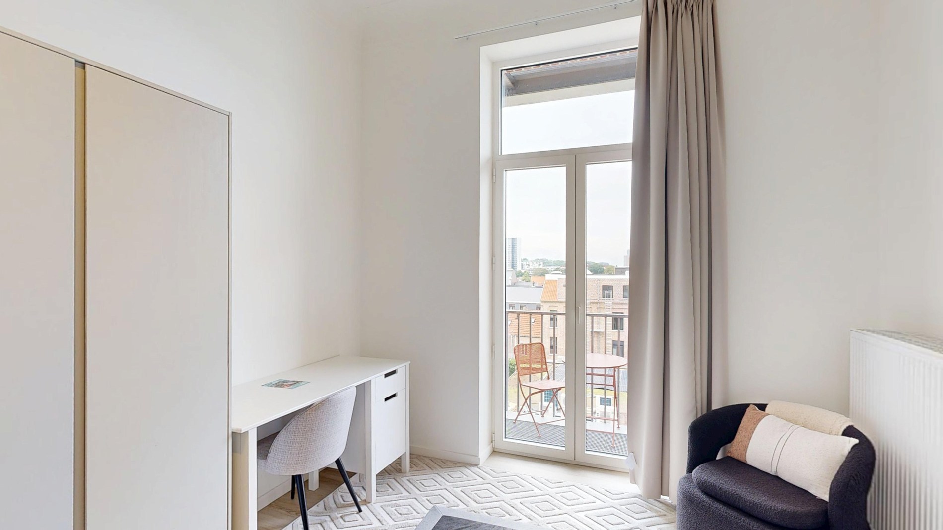 De kamer is voorzien van alle nodige meubels, waaronder een bed, bureau, kast en stoel, zodat je je meteen thuis kunt voelen. Daarnaast beschikt de residentie over gedeelde faciliteiten zoals een eigen badkamer en gemeenschappelijke ruimte, waar je andere medebewoners kunt ontmoeten en samen kunt ontspannen.