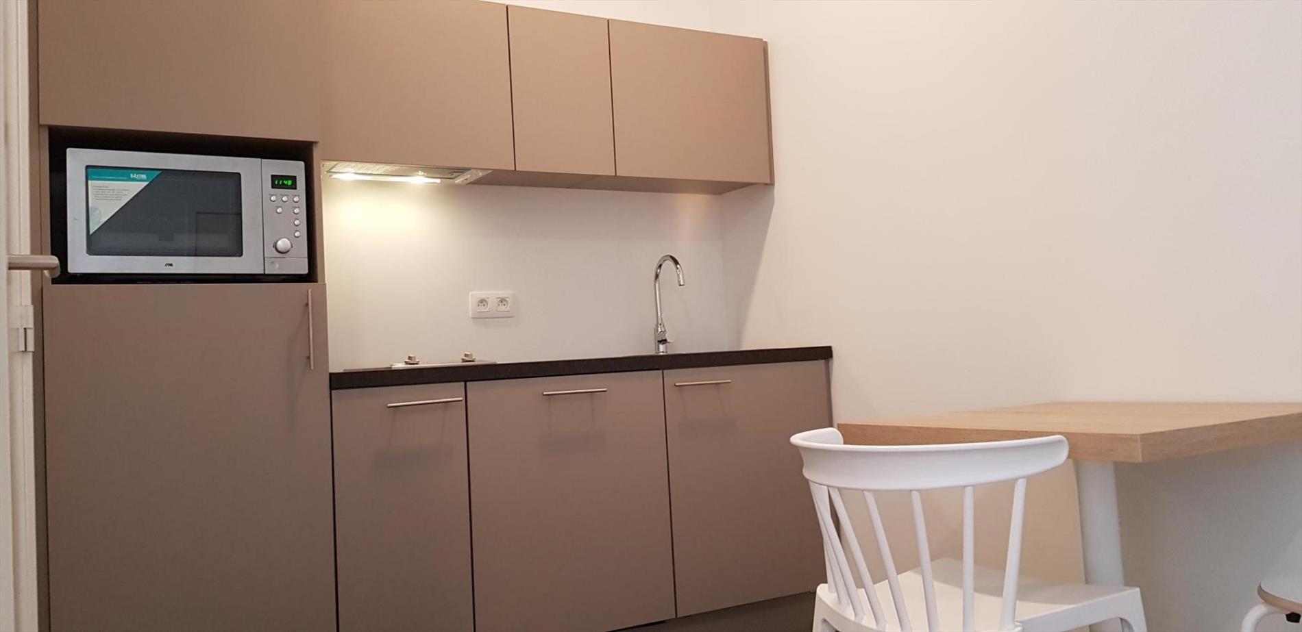 Deze volledig vernieuwde studio kan u weldra bewonderen in de gerenoveerde RESIDENTIE NUVOLA, op minder dan 200 meter van het Ladeuzeplein (oplevering van de renovatie is voorzien voor augustus 2018). Residentie NUVOLA behoudt de charme van haar prachtige voorgevel, maar is binnenin compleet vernieuwd. Extra troeven zijn de ruime fietsenstalling en de energiezuinigheid (gebouw zal volledig voldoen aan de strenge EPB-normeringen). Deze studio is 30 m² en beschikt bijkomend nog over een ruime mezzanine waar uw slaapgedeelte kan voorzien worden. Er is ook een berging voorzien met aansluiting voor uw wasmachine en droogkas. Met een splinternieuwe open keuken, volledig uitgerust met vaatwasser oven, etc... beschikt u over alle comfort op een top-locatie! Beschikbaar vanaf 15 september 2019!