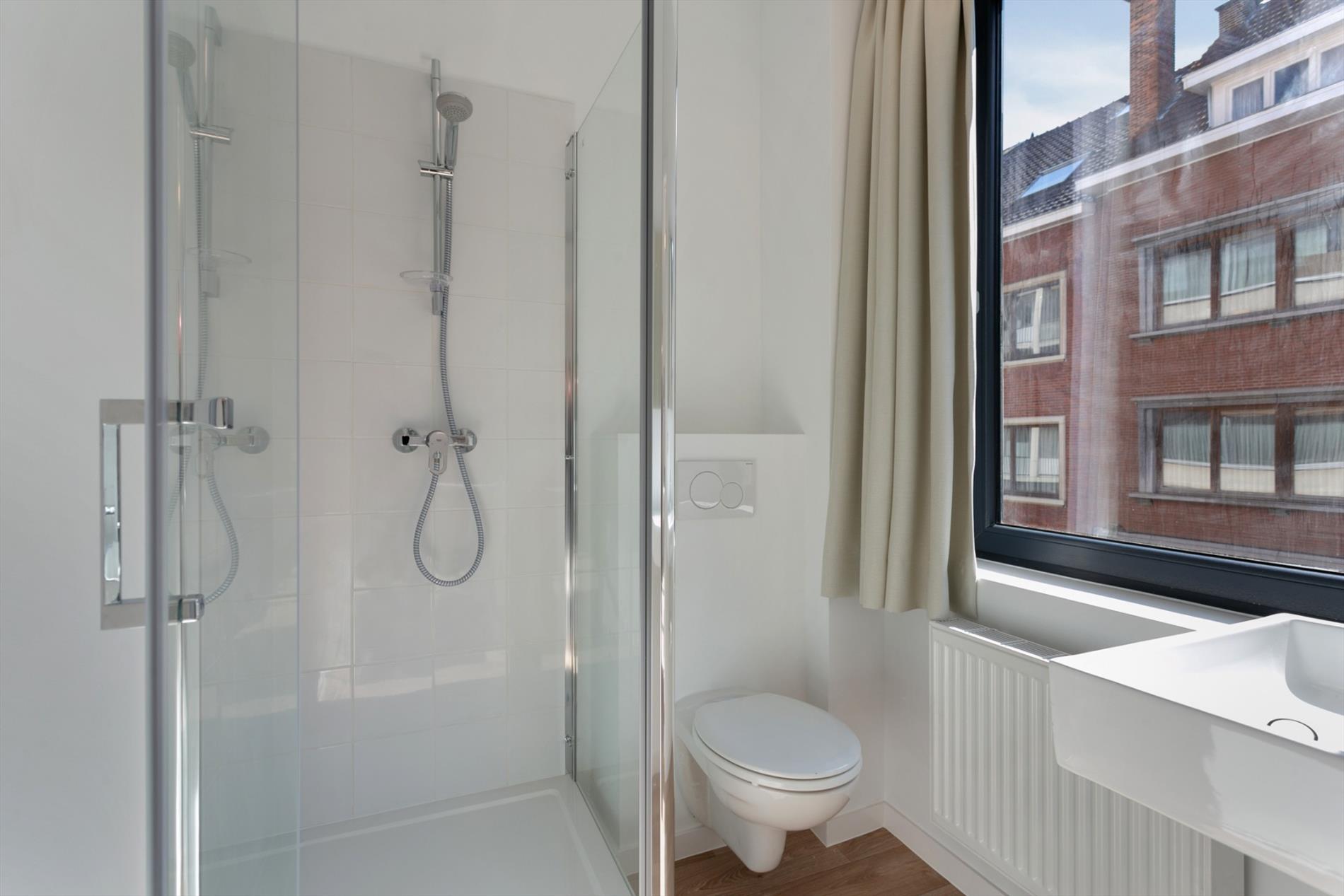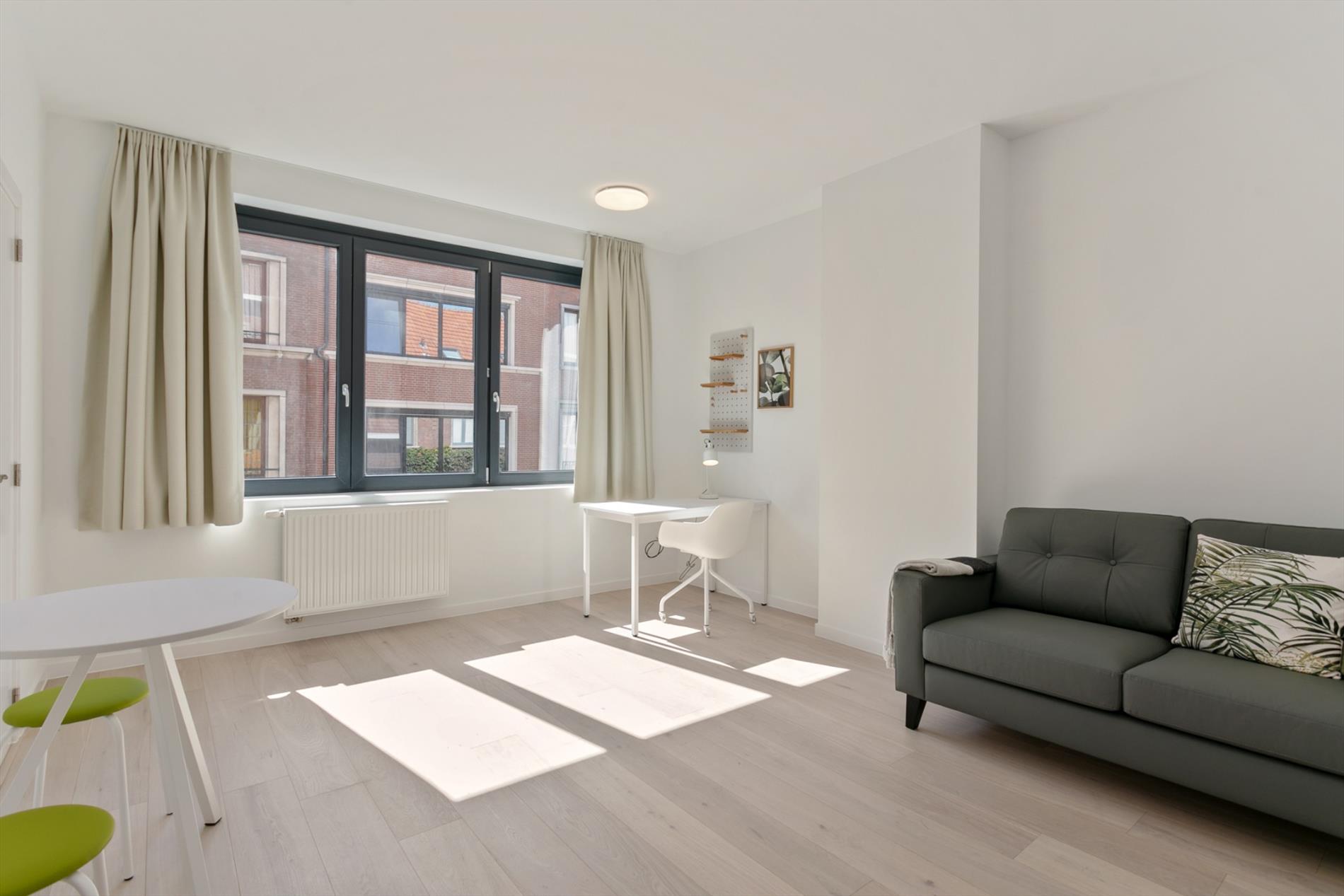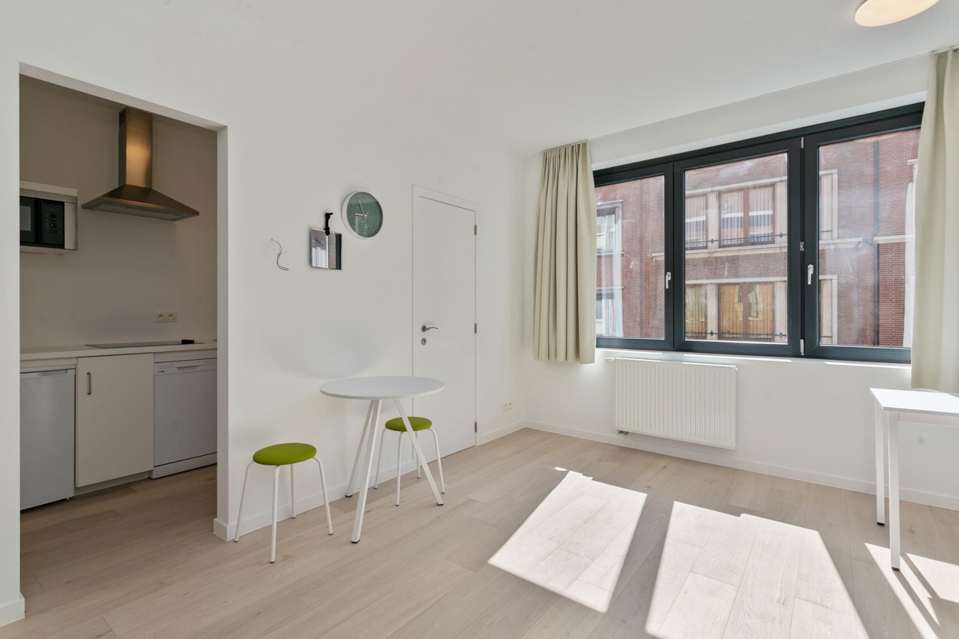 Deze prachtige studio is 32 m² groot en bevindt zich op de eerste verdieping van residentie Bayo, een rustig gelegen residentie dat zich toch op een boogschuit van het centrum van Leuven bevindt. De studio's zijn recentlijk vernieuwd, voorzien van een eigen badkamer met douche lavabo en toilet, een volledig geinstalleerde keuken en een kwalitatieve afwerking.