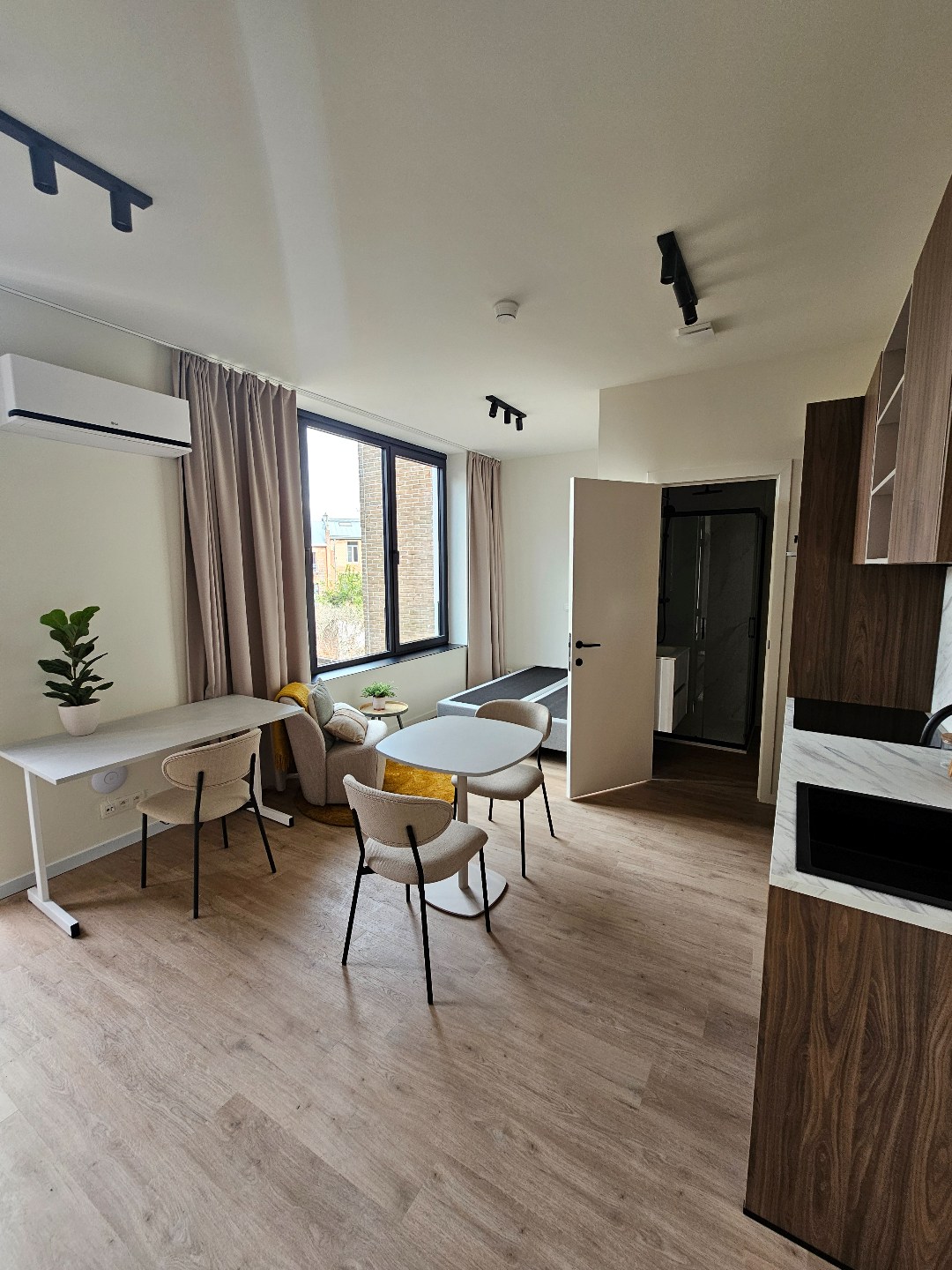 Dit prachtige appartement in het hart van Leuven is een droom voor elke stadsbewoner. De studio is voorzien van een ruim terras waar je heerlijk kunt genieten van de zon en het bruisende stadsleven om je heen. Met 1 slaapkamer en 1 badkamer is dit appartement perfect voor een single of een stel dat op zoek is naar een comfortabele en gezellige plek om te wonen.