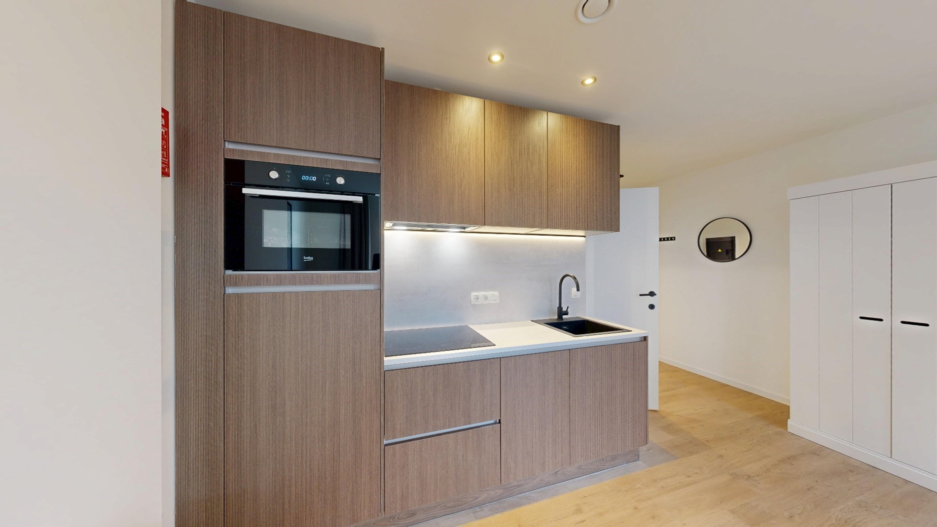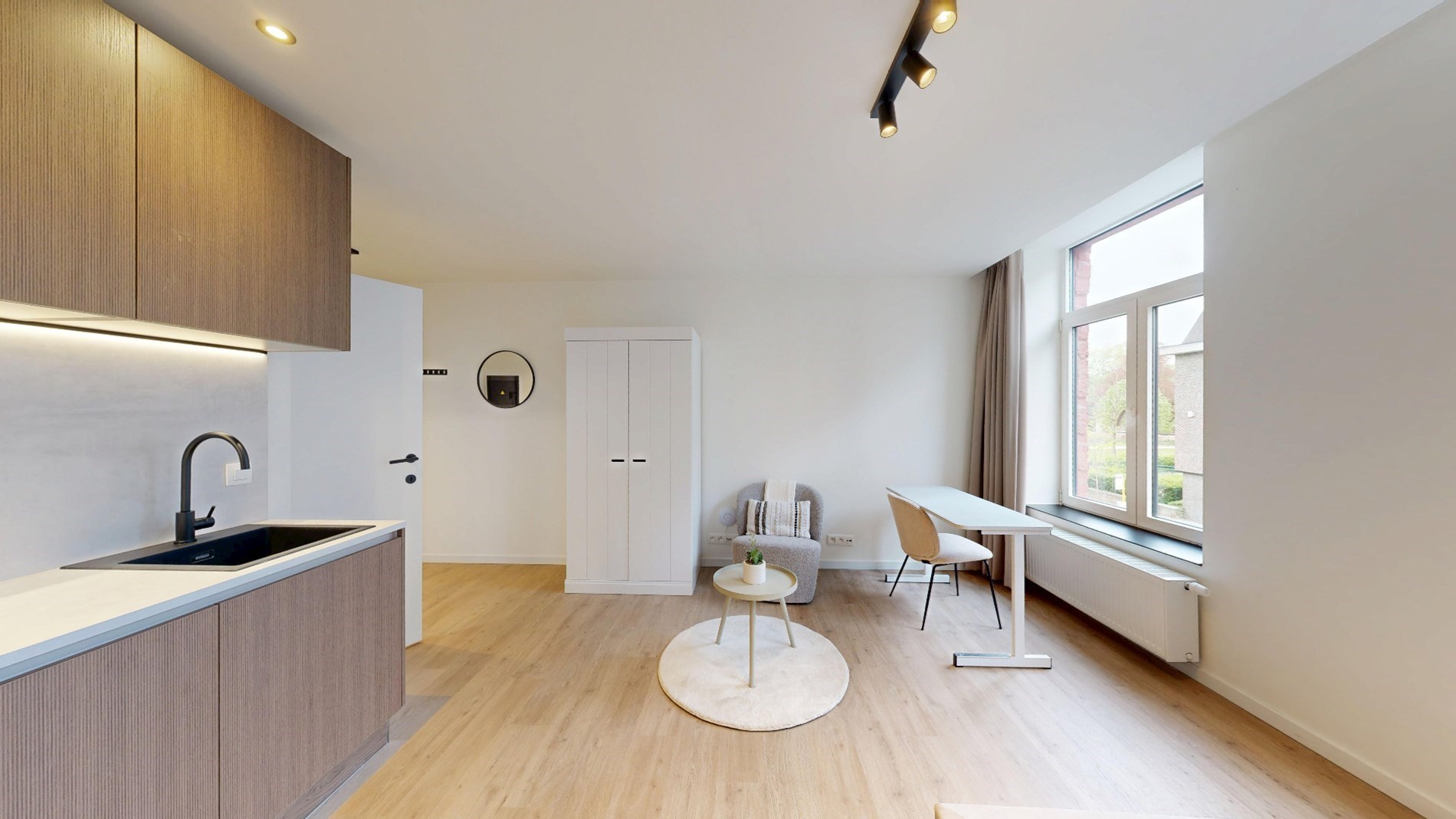 Dit appartement is volledig bemeubeld en voorzien van alle nodige apparatuur en meubels om direct in te trekken. De keuken is uitgerust met moderne toestellen en er is een comfortabel bed en zithoek aanwezig. De studio beschikt ook over een eigen badkamer met douche, wastafel en toilet.